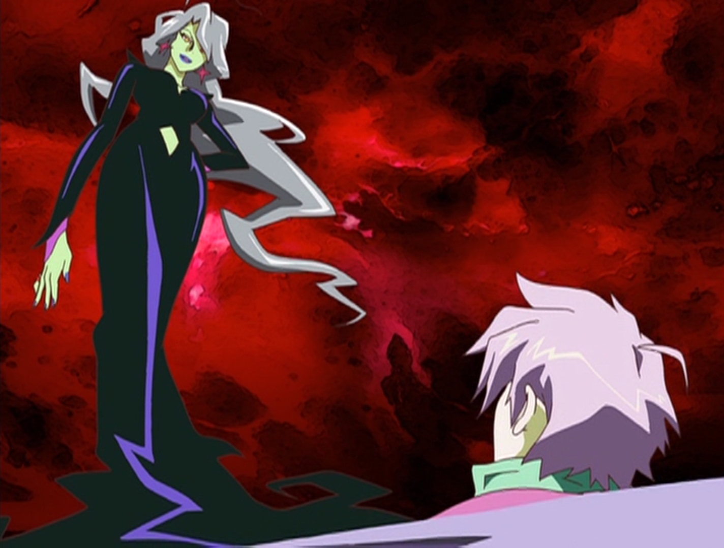 In the anime, Thaegan, though harsh and stern, was also a proud and loving mother to her children. She showed great pride in them, doted on them in her own strict way, and was furious with Lief, Barda, and Jasmine for causing the demise of Jin and Jod, vowing to avenge them. She was even remorseful when she accidentally killed Hot, Tot, Fie, and Fly, and though she favoured Ichabod as the biggest, fiercest, and strongest of her brood, she was sincerely touched by her children’s devotion. In her final appearance, fearful of the Shadow Lord and unable to bear being stripped of her magic and reduced to her true, decrepit age, she chose to end herself. Yet when her children (except Ichabod, who was unconscious at the time) followed her willingly into oblivion, she was first baffled by their decision until she realised how deeply they loved her and how deeply she loved them in return. Accepting that they were a family, she embraced them, and passed on with her children in peace.